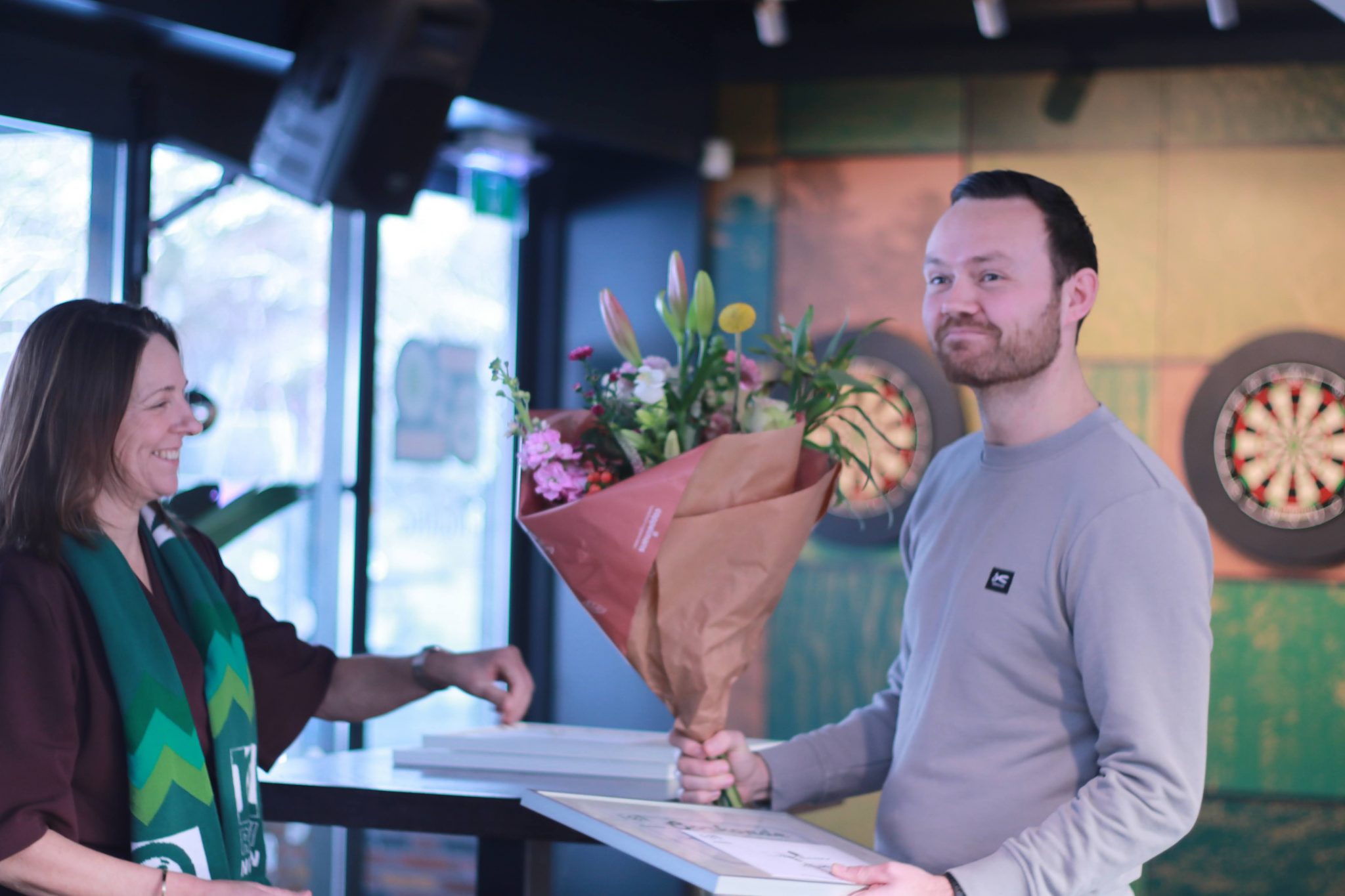 Het waren echt winterse omstandigheden dit moesten worden doorstaan om te kantine op Sportpark de Oude Landen te bereiken. Toch hadden veel echter groenwitters de tocht volbracht en zagen afgelopen zondag 4 jubilarissen gehuldigd worden.