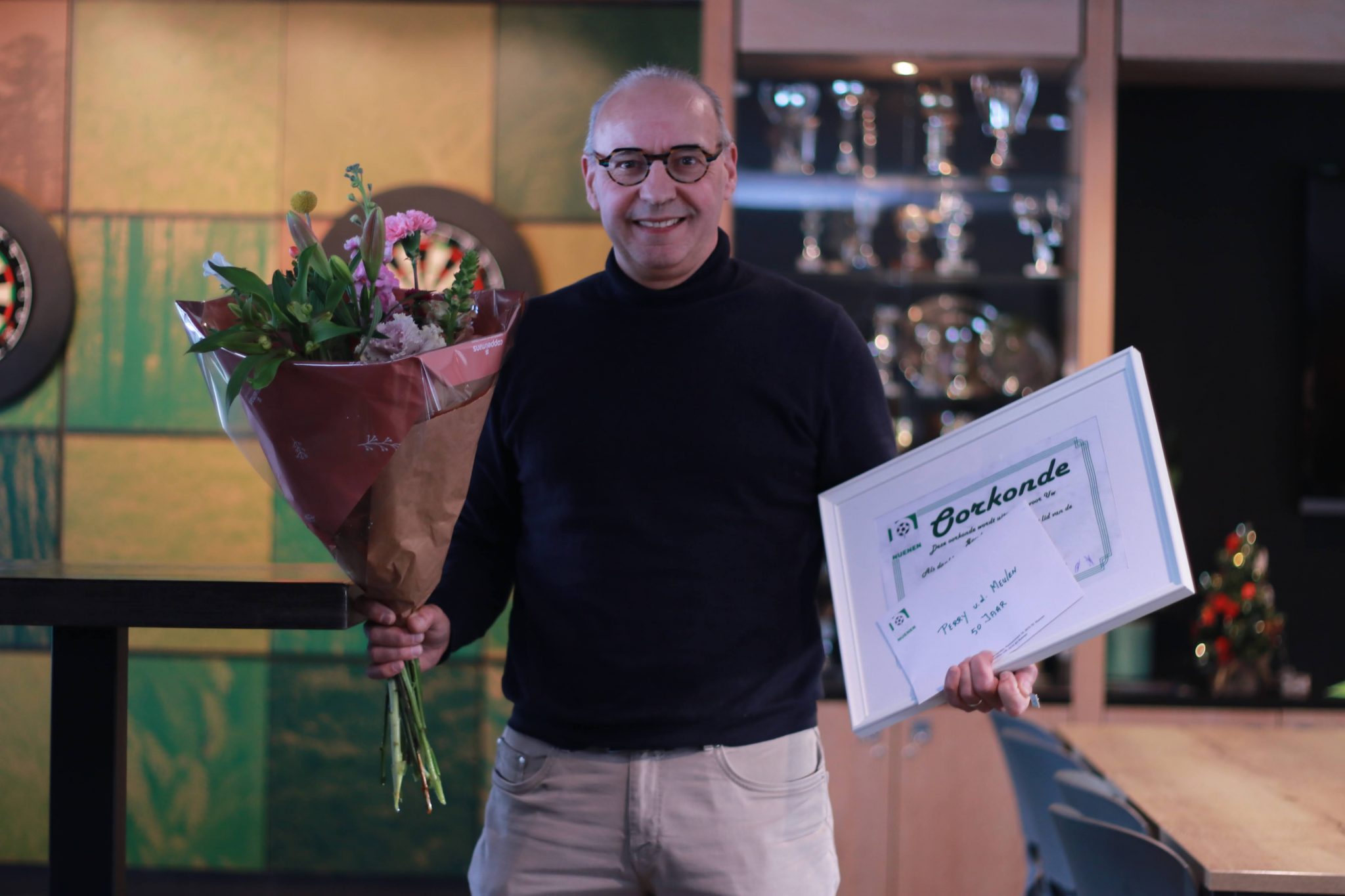 Perry van der Meulen en Frank (Efke) Sanders werden voor hun 50 jarig lidmaatschap gehuldigd door Peter van Hout, secretaris van de club. Joris Jansen als "jonkie" voor 25 jaar trouw lidmaatschap.